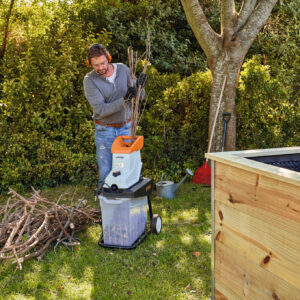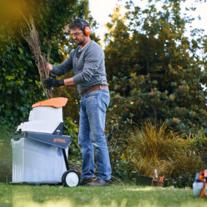 Der kompakte Elektro-Häcksler STIHL GHE 140 L verarbeitet gründlich und leise mittlere Mengen an hartem Schnittgut und ist somit sehr gut für die private Gartenpflege in lärmsensiblen Gebieten geeignet. Robustheit und Laufruhe zeichnen diesen leistungsstarken, auf hartes Schnittgut spezialisierten STIHL Elektro-Häcksler GHE 140 L aus. Der Walzenhäcksler arbeitet mit einer leisen und langsam drehenden Schneidwalze, die Äste mit einer Stärke von bis zu 40 mm zu kompostierbaren Holzschnitzeln verarbeitet. Der Einfülltrichter mit Kleeblattöffnung unterstützt ein sicheres Befüllen des Leisehäckslers STIHL GHE 140 L zum Häckseln. Aufgefangen wird das Häckselgut in einem integrierten, transparenten 60-l-Häckselbehälter. Nach der Arbeit kann der elektrische Häcksler für den Transport und insbesondere für die Lagerung mit wenigen Handgriffen zusammengeklappt, in den Häckselbehälter versenkt und somit raumsparend untergebracht werden. Der Gartenabfall mit seinen wertvollen Nährstoffen kann so später als Dünger für neues Wachstum im Garten sorgen.
