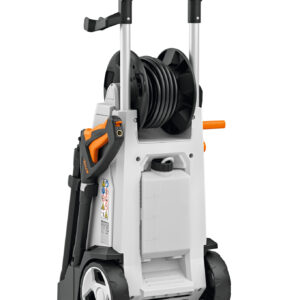 Zum bequemen Transport des Hochdruckreinigers ist der STIHL RE 170 PLUS mit einem Teleskopgriff, einem Transportgriff sowie mit einem integrierten Fahrwerk ausgestattet. Das Netzkabel können Sie an Kabelhaken aufwickeln und die Düsen im integrierten Staufach geschützt verstauen. Für eine einfache Handhabung und Aufbewahrung des Hochdruckschlauchs ist zusätzlich am RE 170 PLUS eine Schlauchtrommel mit Schlauchführung integriert.