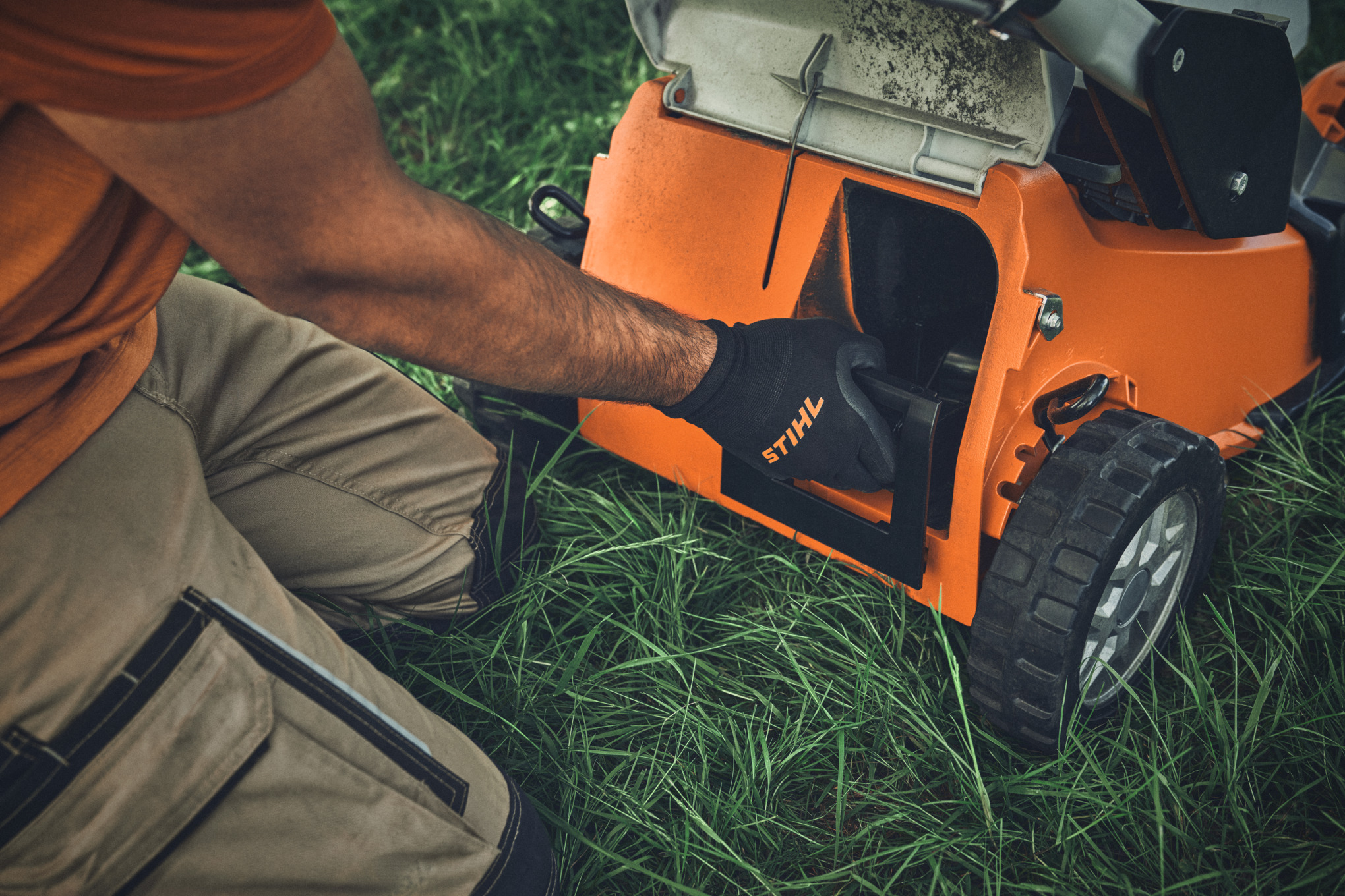 Der STIHL RMA 750 V verfügt über ein Hybridgehäuse, bestehend aus einem robusten Aluminium-Außengehäuse sowie einem Innengehäuse aus schlagzähem Polymer. Auch der Front-Anfahrschutz und die auswechselbaren seitlichen Metallscheuerleisten tragen zu einer hohen Lebensdauer bei. Dank des bürstenlosen Elektromotors, der mit 2 Akkus aus dem dem STIHL AP-System angetrieben wird, mähen und mulchen Sie mit dem STIHL RMA 750 V auch ausgedehnte Flächen besonders effektiv.