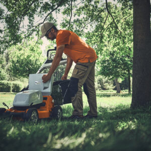 Der Akku-Rasenmäher STIHL RMA 756 V mit Vario-Radantrieb eignet sich besonders zum professionellen Mähen und Mulchen von großen Flächen mit Hanglagen bis zu 18°. Der robuste 4-in-1 Profi-Akku-Rasenmäher mit Mulchkeil, Seiten- und Heckauswurf sowie 80 l Textilgrasfangkorb vereint hohen Arbeitskomfort mit hoher Leistung und ist dabei sehr geräuscharm. Dadurch kann er auch in lärmsensiblen Gegenden wie Wohnanlagen, Schulen oder Krankenhausgärten eingesetzt werden.