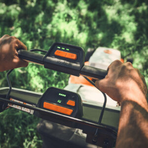 Zudem sorgt der klapp- und höhenverstellbare Mono-Komfortlenker mit digitaler Bedieneinheit und integrierter STIHL connected Funktion für ein effizientes Arbeiten und einen hohen Bedienkomfort. Am Komfortlenker können Sie die Geschwindigkeit des Vario-Radantriebs in 5 Stufen einstellen – also bei Steigungen zum Beispiel die Geschwindigkeit reduzieren und auf ebenen Flächen erhöhen. Für einen bestmöglichen Arbeitsfortschritt haben Sie auch die Wahl zwischen 3 Mähmodi: Eco, Standard und Auto-Boost. Wenn Sie den Eco-Modus aktivieren, passt sich die Drehzahl des Motors Ihres Rasenmähers automatisch an die tatsächlich benötigte Leistung an. So verbraucht Ihr Akku-Rasenmäher weniger Energie und kann eine größere Fläche bewältigen.
